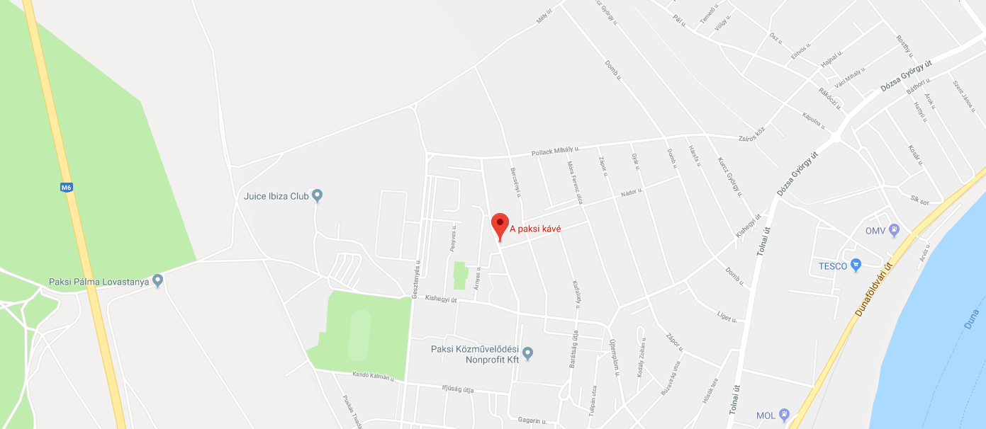 A paksi kávé Paks újvárosi részén, de a városból bárhonnan néhány perc alatt elérhető, az M6 autópálya Paks Dél lehajtójától pedig 5 perc alatt el lehet jutni hozzánk. Sok és ingyenes parkoló várja az autóval érkezőket, aki pedig busszal jönne, az 1. számú helyi autóbuszjárat megállója 2 percre található.